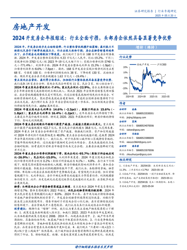 【国盛证券】【2024】2024开发房企年报综述:行业全面亏损,头部房企依然具备显著竞争优势-24页 证券期货研究报告