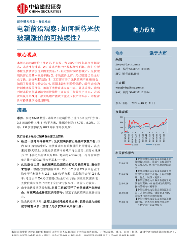 【中信建投证券】【202508】电新前沿观察:如何看待光伏玻璃涨价的可持续性?-11页 证券期货研究报告