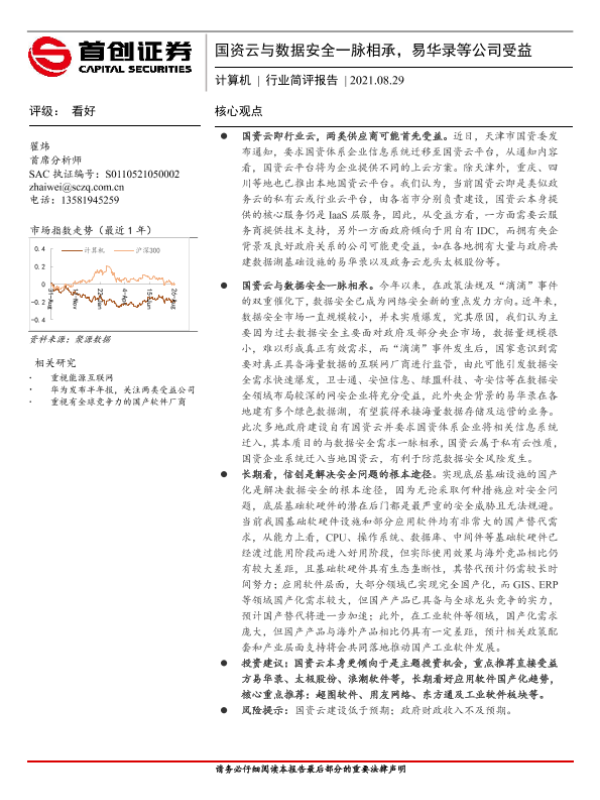 【首创证券】【20210829】计算机行业简评报告:国资云与数据安全一脉相承,易华录等公司受益-2页 行业研究