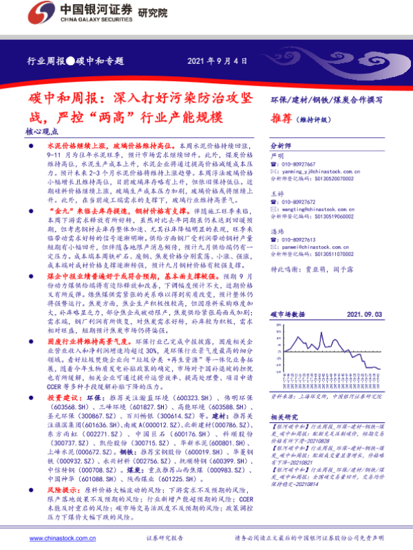【银河证券】【20210904】碳中和周报:深入打好污染防治攻坚战,严控“两高”行业产能规模-19页 行业研究
