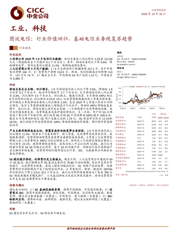 【中金公司】【20201026】图说电信:行业价值回归,基础电信业务现复苏趋势-9页 行业研究