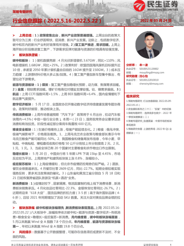 【民生证券】【20220524】策略专题研究:行业信息跟踪-21页 行业研究