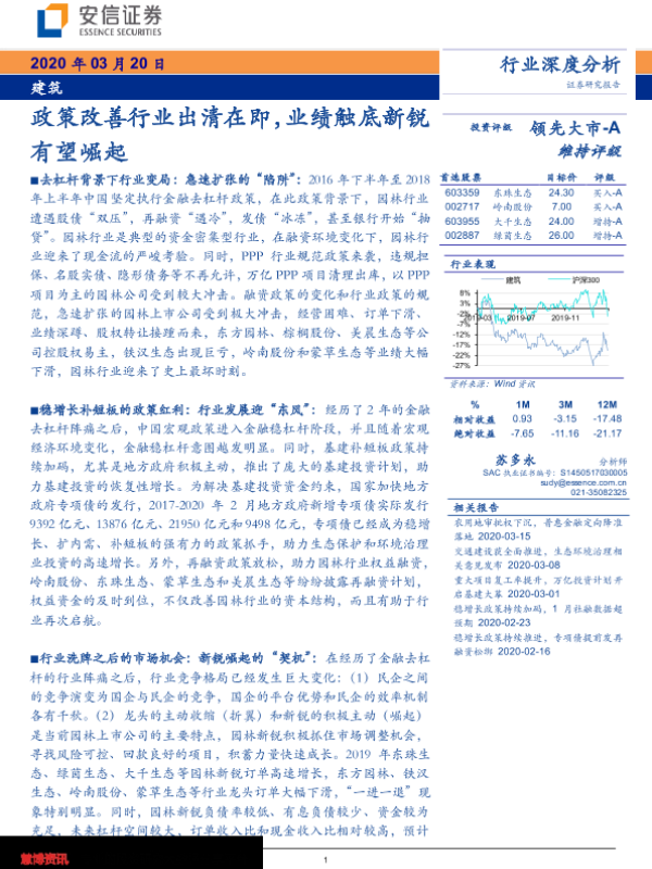 【安信证券】【20200320】建筑行业深度分析:政策改善行业出清在即,业绩触底新锐有望崛起-20页 行业研究