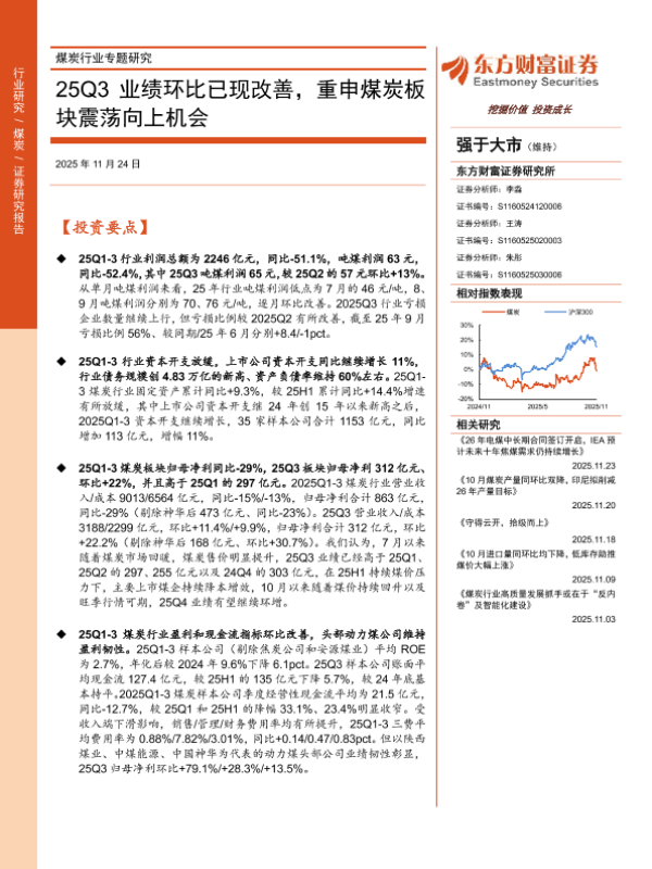 【东方财富证券】【202511】煤炭行业专题研究:25Q3业绩环比已现改善,重申煤炭板块震荡向上机会-21页 证券期货研究报告