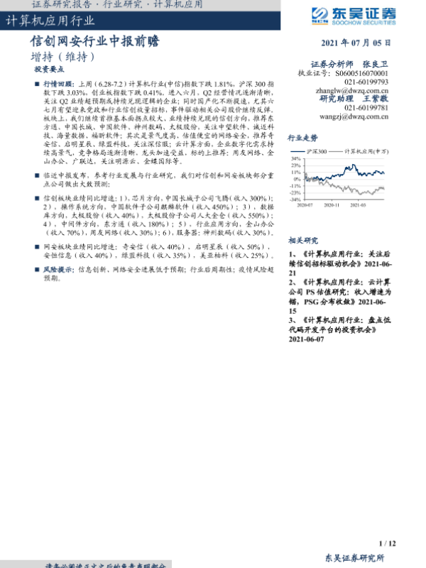 【东吴证券】【20210705】计算机应用行业:信创网安行业中报前瞻-12页 行业研究