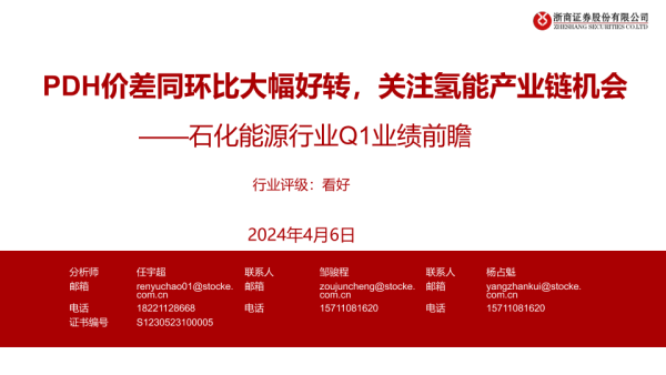 【浙商证券】【20240406】石化能源行业Q1业绩前瞻:PDH价差同环比大幅好转,关注氢能产业链机会-11页 行业研究