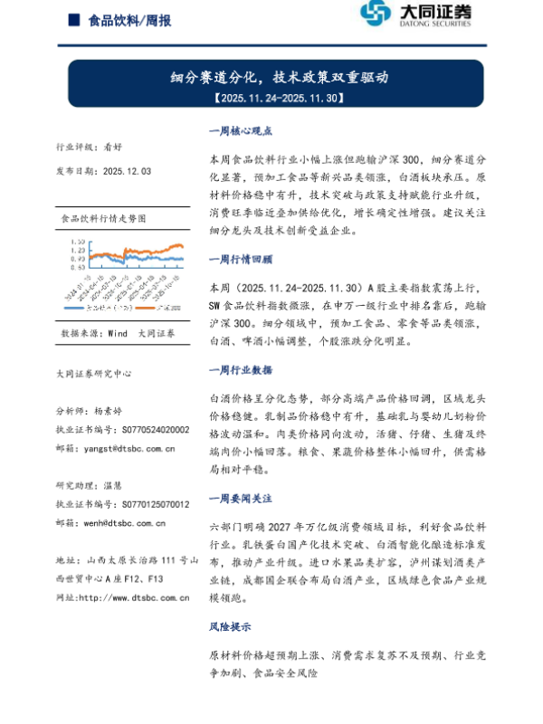 【大同证券研究中心】【202512】食品饮料/周报-12页 证券期货研究报告