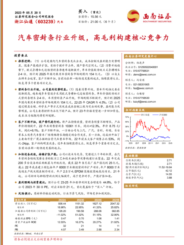 【西南证券】【20230520】浙江仙通-603239.SH-汽车密封条行业升级,高毛利构建核心竞争力-26页 行业研究