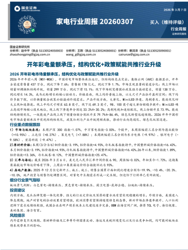 【国金证券】【202603】2026开年中国彩电市场承压前行,政策赋能与产品升级同频发力-12页 证券期货研究报告
