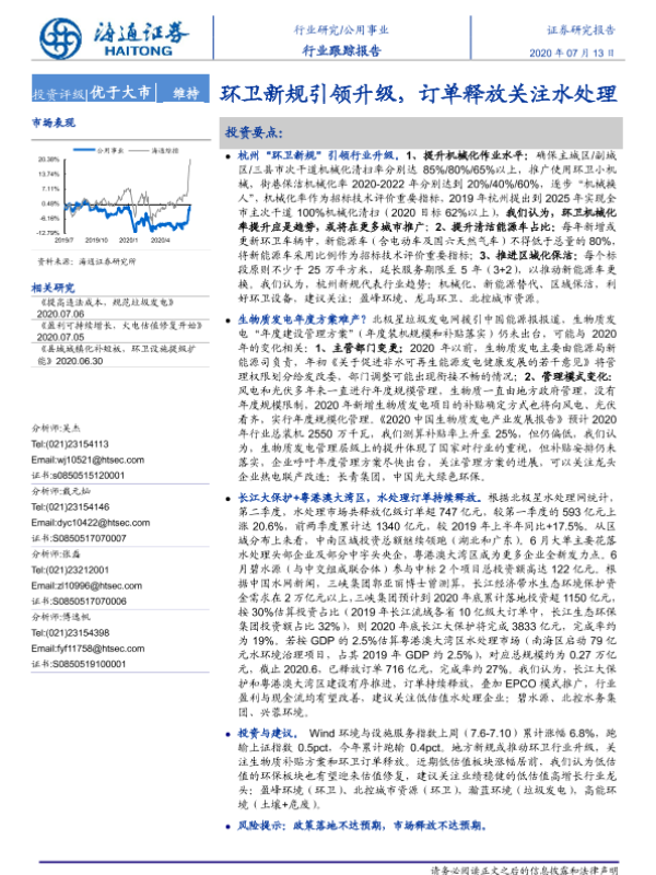 【海通证券】【20200713】公用事业行业跟踪报告:环卫新规引领升级,订单释放关注水处理-2页 行业研究
