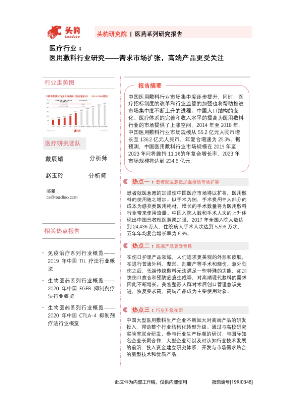 【头豹研究院】【20201113】医疗行业:医用敷料行业研究-需求市场扩张,高端产品更受关注-35页 行业研究