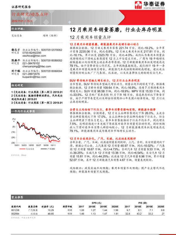【华泰证券】【20190115】12月乘用车销量点评-2页 行业研究
