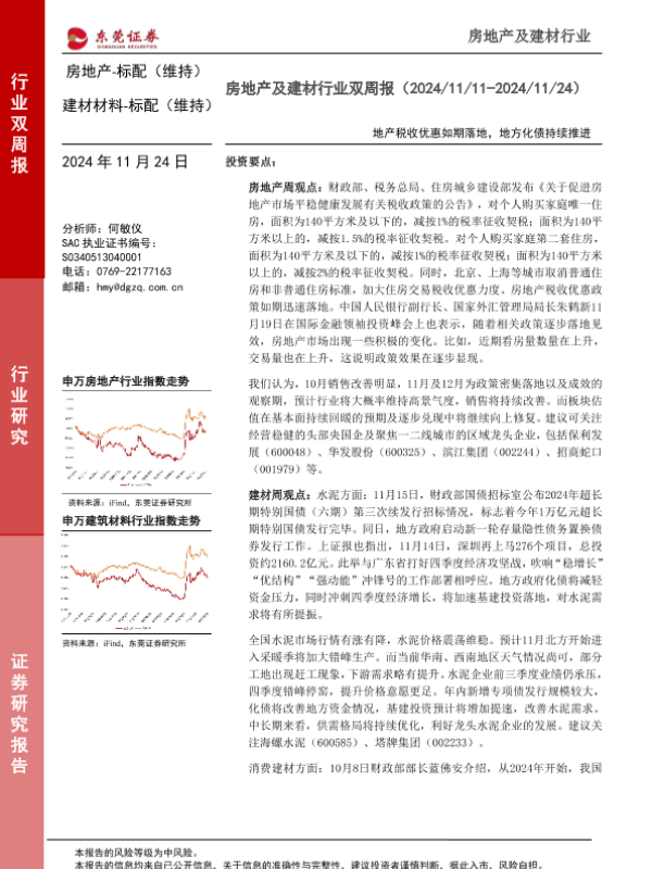 【东莞证券】【20241124】房地产及建材行业双周报:地产税收优惠如期落地,地方化债持续推进-15页 行业研究
