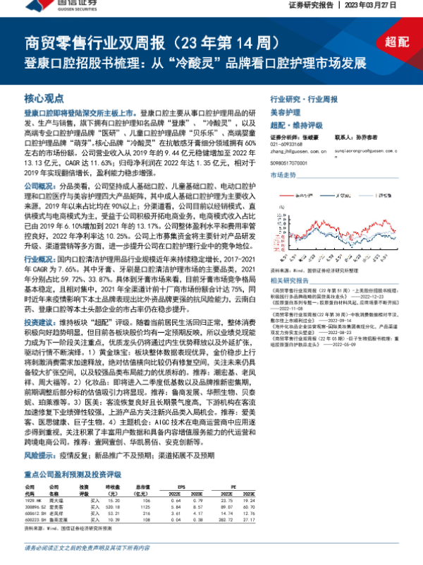 【国信证券】【20230327】商贸零售行业双周报:登康口腔招股书梳理:从“冷酸灵”品牌看口腔护理市场发展-15页 行业研究