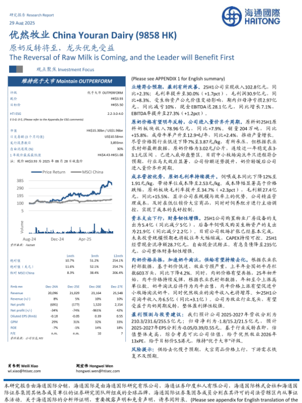 【海通国际】【202508】原奶反转将至,龙头优先受益-13页 证券期货研究报告