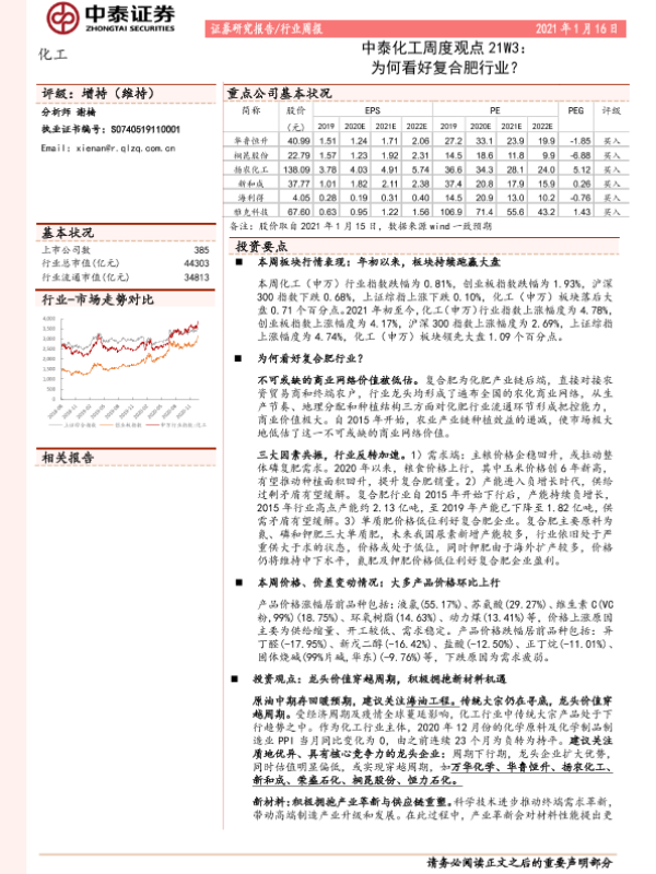 【中泰证券】【20210116】中泰化工周度观点21W3:为何看好复合肥行业?-28页 行业研究