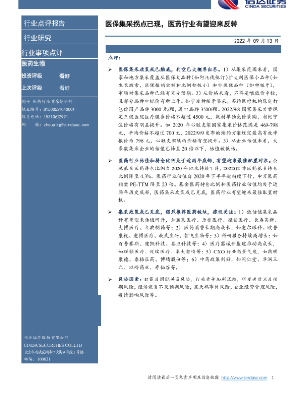 【信达证券】【20220913】医药生物行业事项点评:医保集采拐点已现,医药行业有望迎来反转-3页 行业研究