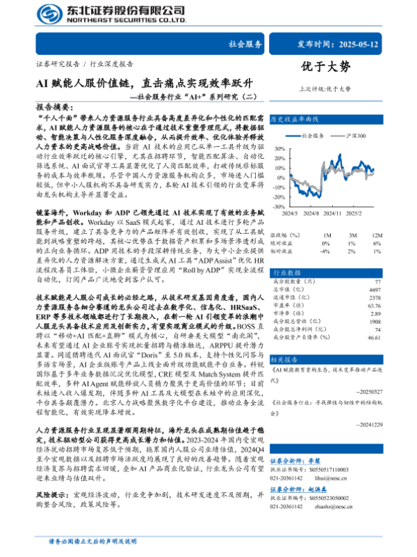 【东北证券】【20250512】AI赋能人服价值链,直击痛点实现效率跃升-30页 证券期货研究报告
