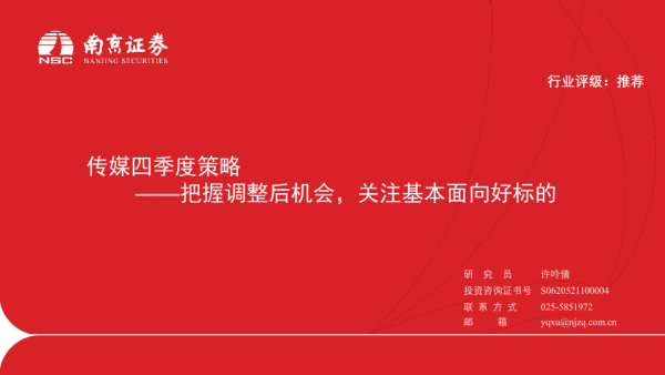 【南京证券】【20231023】传媒四季度策略:把握调整后机会,关注基本面向好标的-26页 行业研究