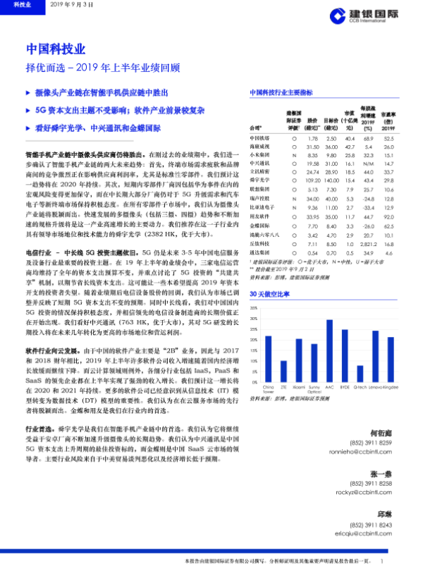 【建银国际】【20190903】中国科技业:择优而选–2019年上半年业绩回顾-10页 行业研究