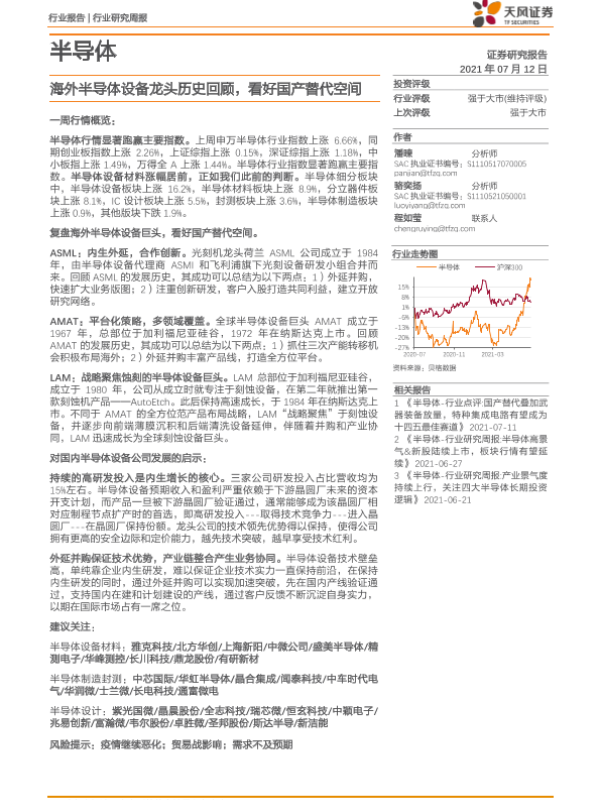 【天风证券】【20210712】20210712-天风证券-半导体行业研究周报:海外半导体设备龙头历史回顾,看好国产替代空间-17页 行业研究