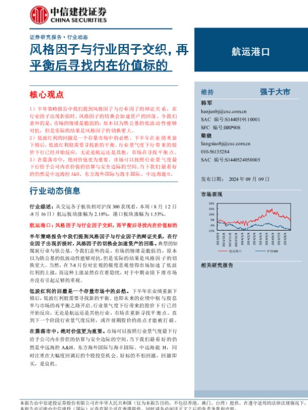 【中信建投证券】【20240909】2024年09月09日更新-【中信建投】航运港口行业:风格因子与行业因子交织,再平衡后寻找内在价值标的-22页 行业研究