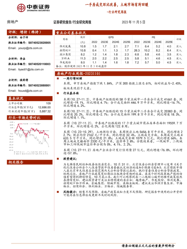 【中泰证券】【20231105】房地产行业研究周报:一手房成交环比改善,土地市场有所回暖-17页 行业研究