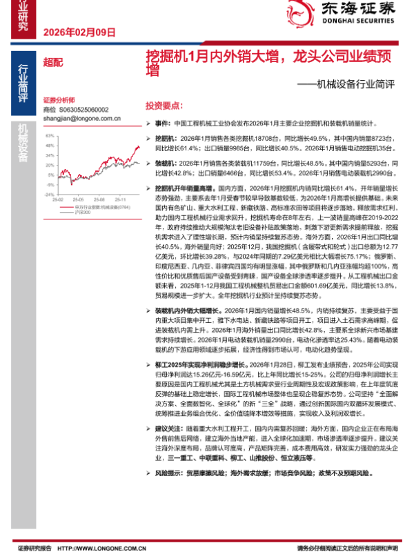 【东海证券】【202602】挖掘机1月内外销大增,龙头公司业绩预增-2页 证券期货研究报告