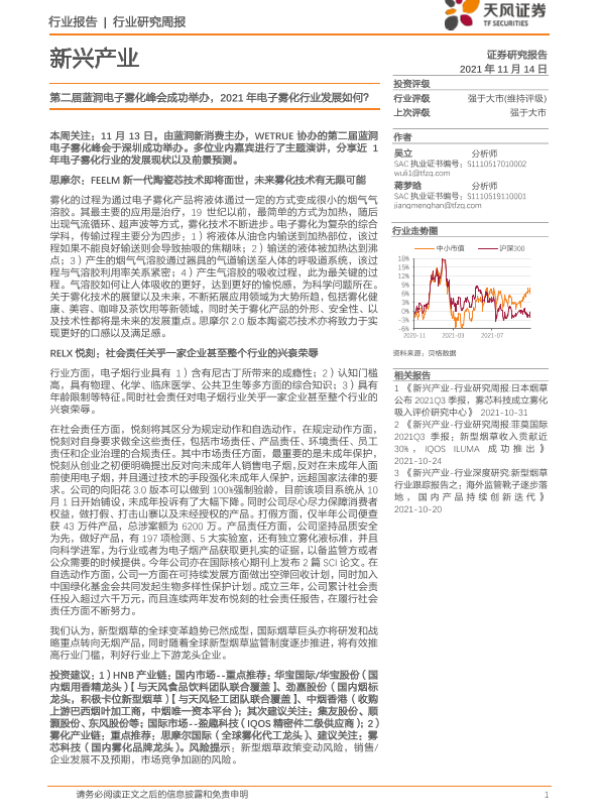 【天风证券】【20211114】第二届蓝洞电子雾化峰会成功举办,2021年电子雾化行业发展如何?-5页 行业研究