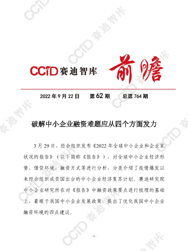 【赛迪研究院中小企业研究所】【202209】破解中小企业融资难题应从四个方面发力-9页 行业研究