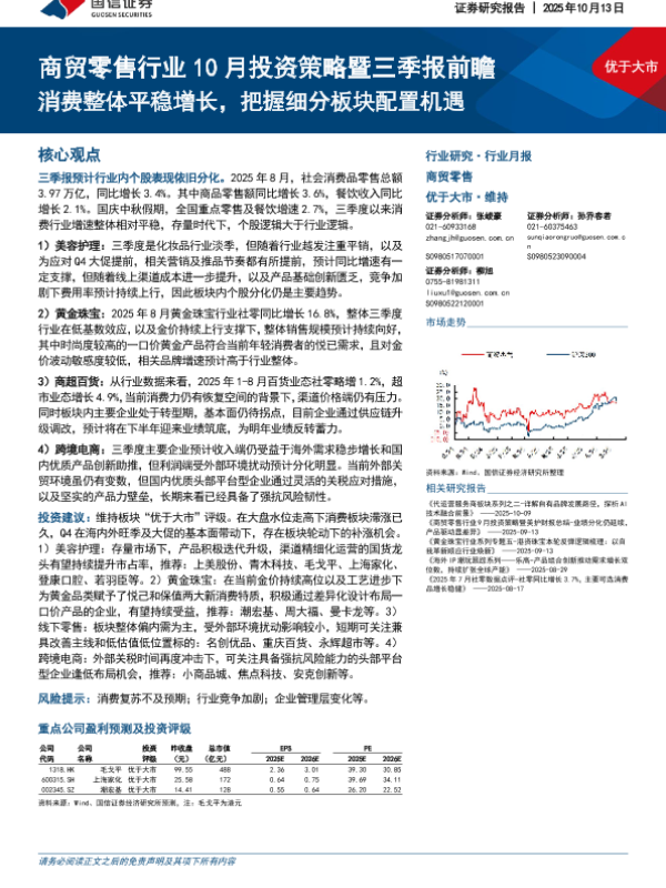【国信证券】【202510】商贸零售行业10月投资策略暨三季报前瞻:消费整体平稳增长,把握细分板块配置机遇-12页 证券期货研究报告