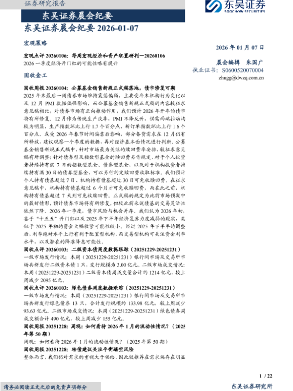 【东吴证券】【202601】东吴证券晨会纪要-22页 会议纪要