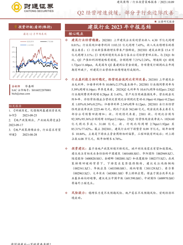 【财通证券】【20231009】建筑行业2023年中报总结:Q2经营增速放缓,部分子行业边际改善-19页 行业研究