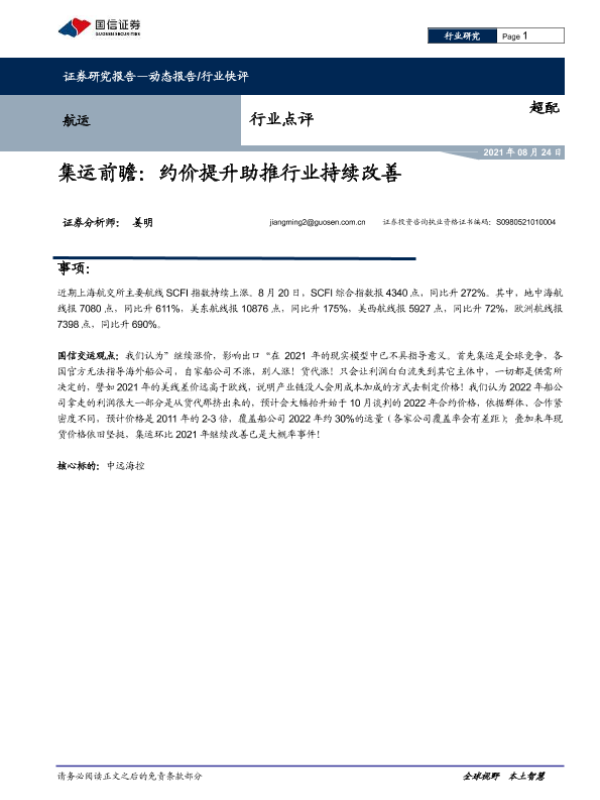 【国信证券】【20210824】集运前瞻:约价提升助推行业持续改善-7页 行业研究