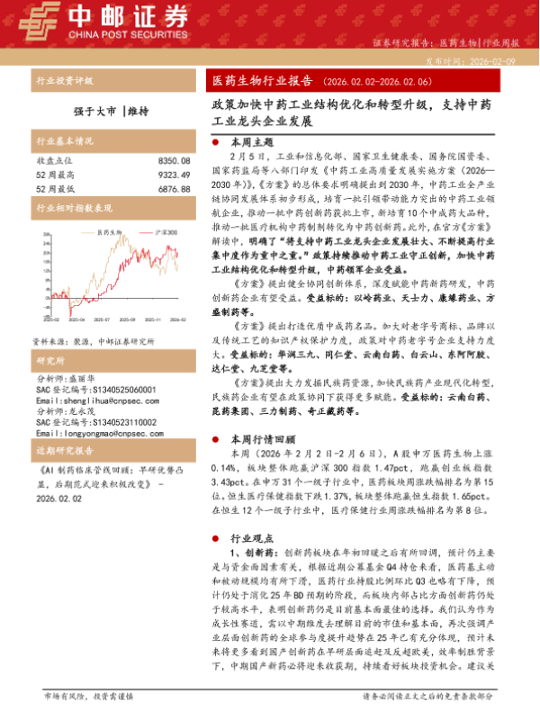 【中邮证券】【202602】政策加快中药工业结构优化和转型升级,支持中药工业龙头企业发展-15页 证券期货研究报告