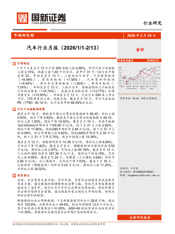 【国新证券】【202602】汽车行业月报(2026/1/1-2/13)-5页 证券期货研究报告