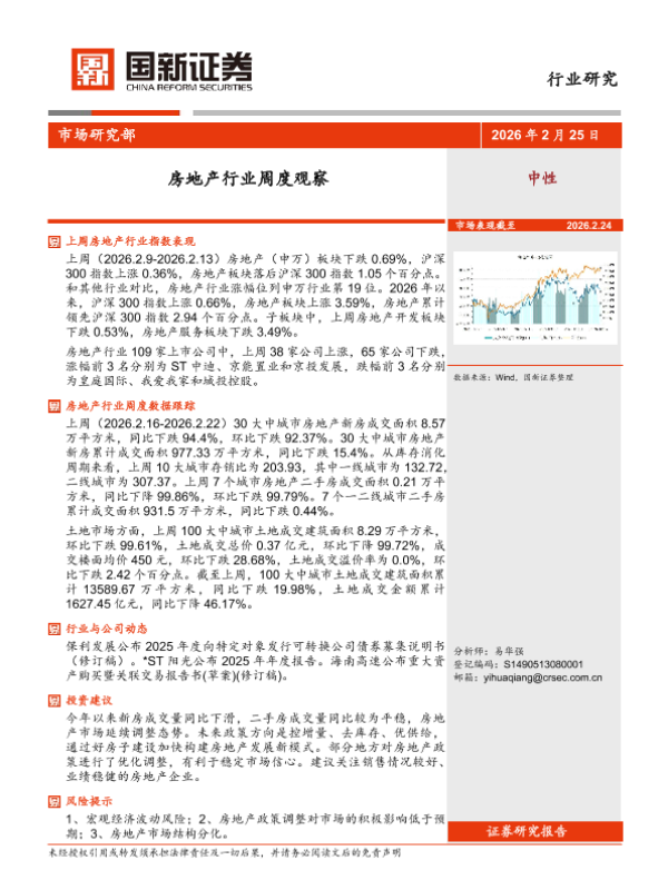 【国新证券】【202602】房地产行业周度观察-11页 证券期货研究报告