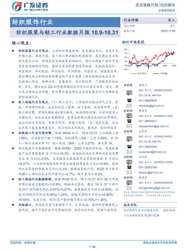 【广发证券】【202511】纺织服装与轻工行业数据月报 10.9-10.31-24页 证券期货研究报告