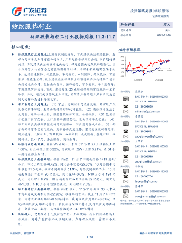 【广发证券】【202511】纺织服装与轻工行业数据周报11.3-11.7-26页 证券期货研究报告