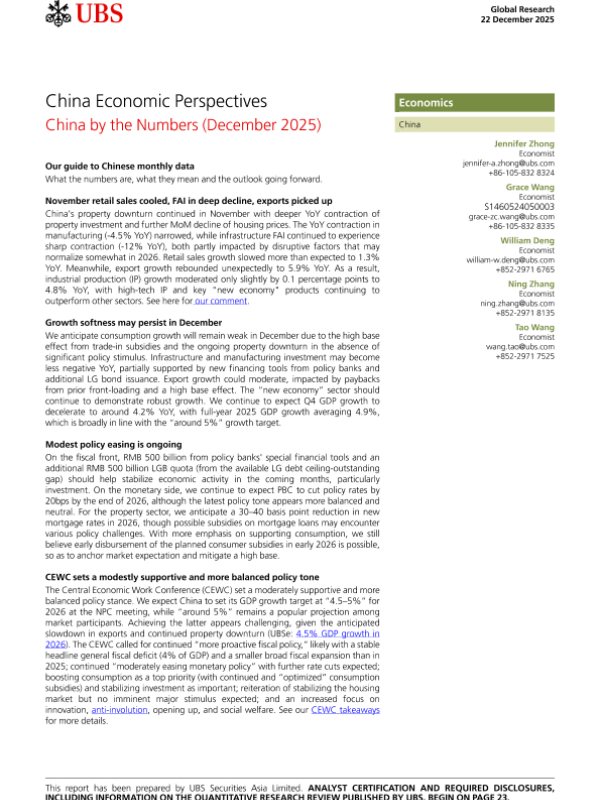 【UBS】【202512】China Economic Perspectives China by the Numbers (December 2025)-26页 证券期货研究报告