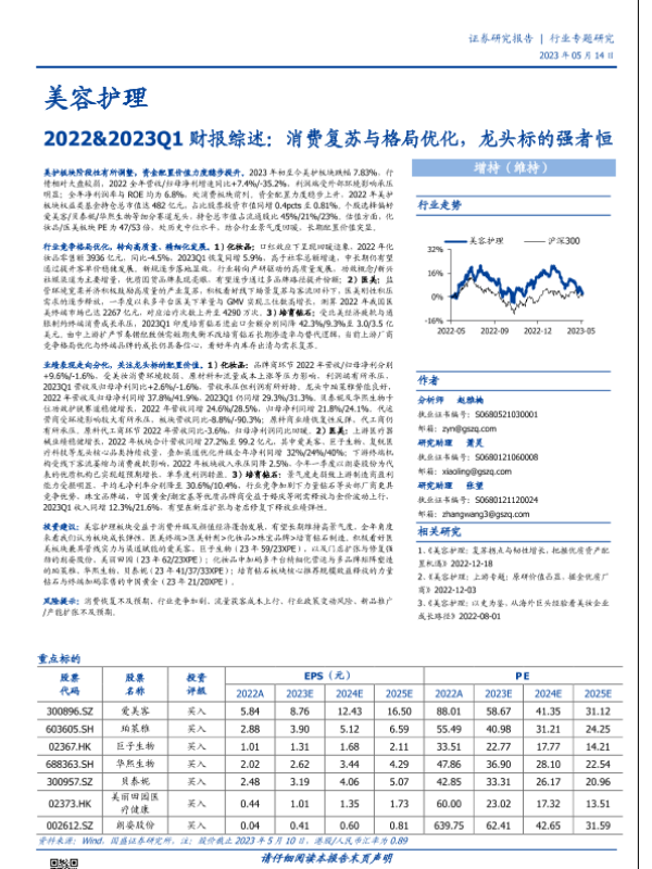 【国盛证券】【20230514】美容护理行业2022&2023Q1财报综述:消费复苏与格局优化,龙头标的强者恒强-42页 行业研究