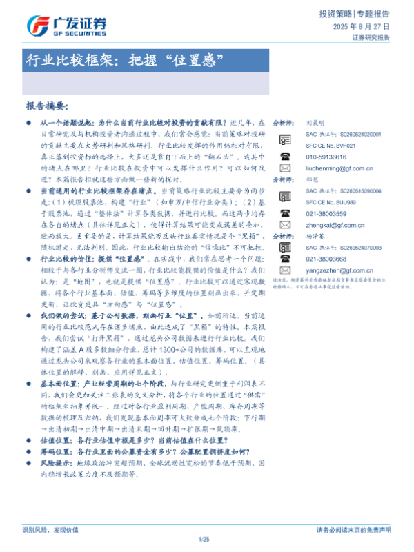 【广发证券】【202508】行业比较框架:把握“位置感”-25页 证券期货研究报告
