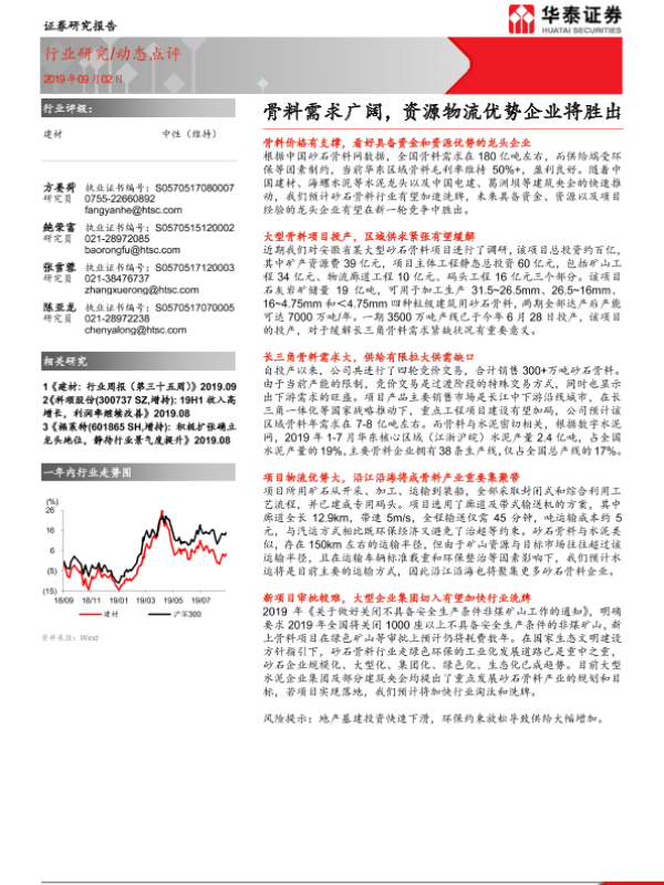 【华泰证券】【20190902】建材行业动态点评:骨料需求广阔,资源物流优势企业将胜出-2页 行业研究