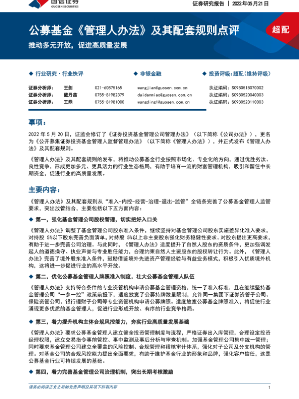 【国信证券】【20220521】公募基金《管理人办法》及其配套规则点评:推动多元开放,促进高质量发展-5页 行业研究