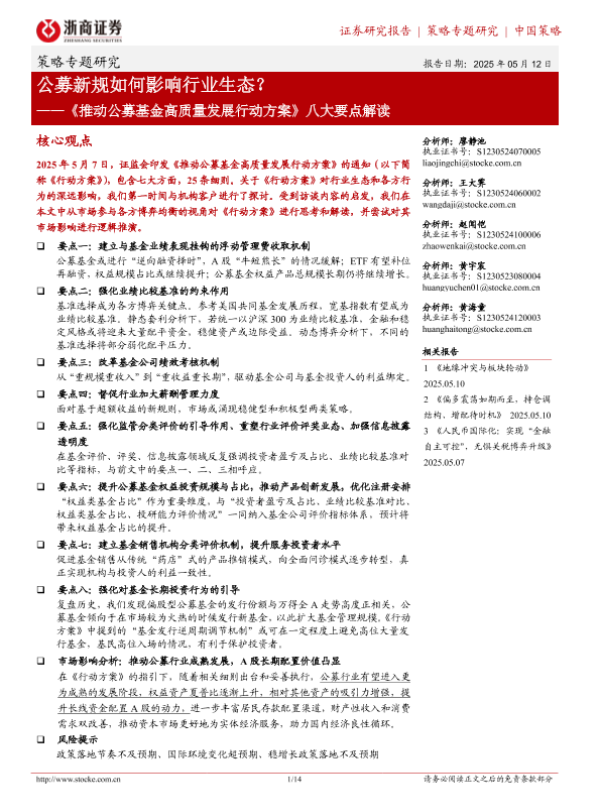 【浙商证券】【20250512】推动公募基金高质量发展行动方案八大要点解读-14页 证券期货研究报告