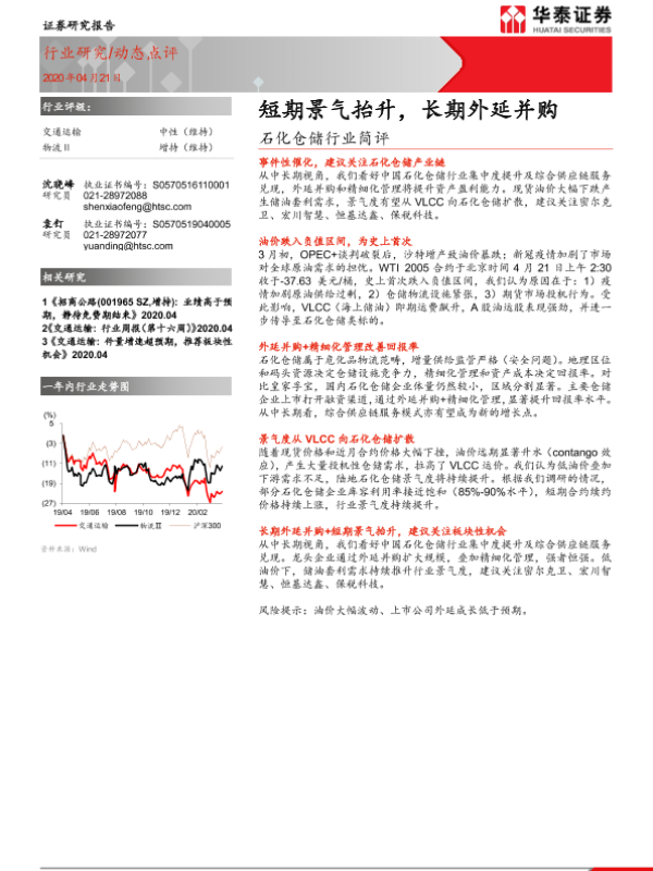 【华泰证券】【20200421】石化仓储行业简评:短期景气抬升,长期外延并购-4页 行业研究