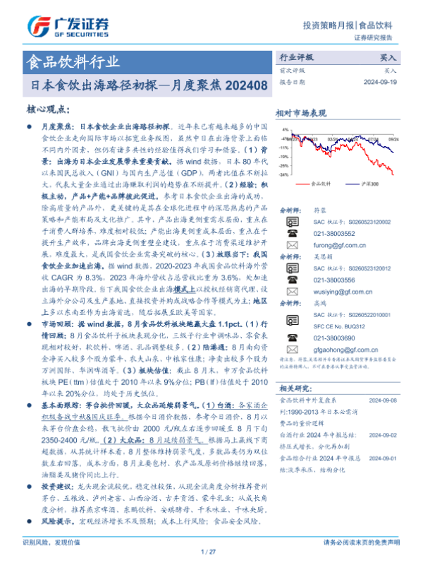 【广发证券】【20240919】食品饮料行业月度聚焦:日本食饮出海路径初探-27页 行业研究