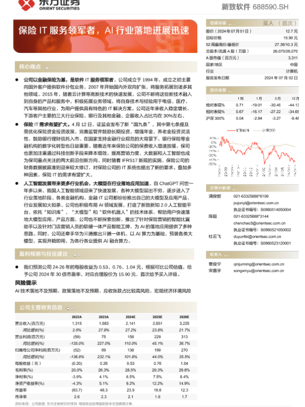 【东方证券】【20240702】新致软件(688590)保险IT服务领军者,AI行业落地进展迅速-25页 行业研究