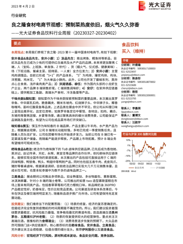 【光大证券】【20230402】20230402-光大证券-食品饮料行业周报:良之隆食材电商节观感,预制菜热度依旧,烟火气久久弥香-10页 行业研究