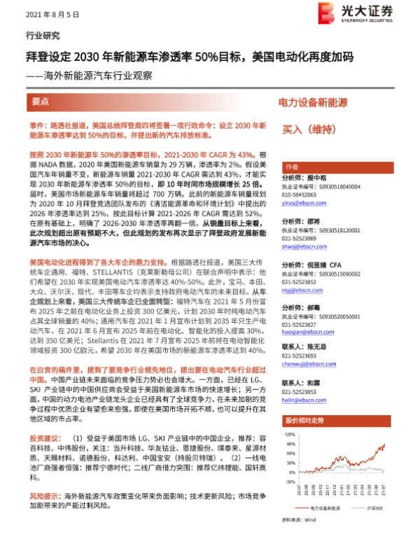 【光大证券】【20210805】海外新能源汽车行业观察:拜登设定2030年新能源车渗透率50%目标,美国电动化再度加码-2页 行业研究